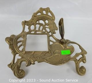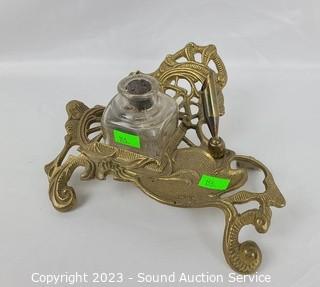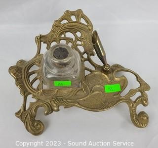 Lot #0155: Vtg. Brass Desktop Inkwell Pen Holder