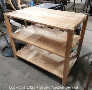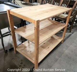 Lot #0019: 3-Tier Natural Finish Pine Wood Shelving Unit