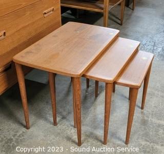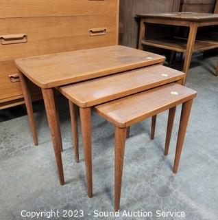 Lot #0002: 3pc MCM Teak Nesting Table Set