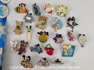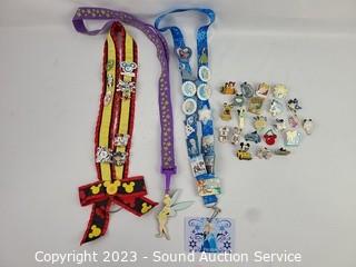 Lot #0173: 47 Collectible Disney Pins w/3 Lanyards