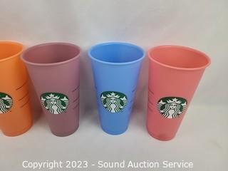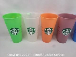Lot #0174: 9 Plastic Cups 1 w/Straw & Cover