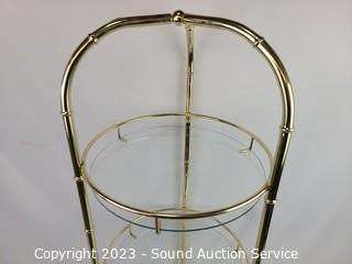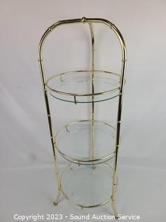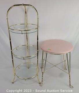 Lot #0262: Brass Finish Vanity Stool & 3-Tier Shelf