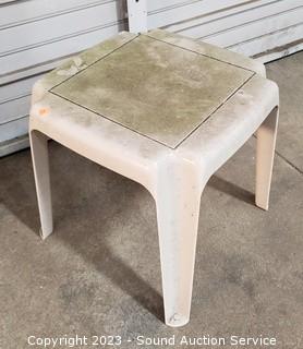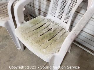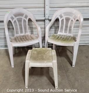 Lot #0280: Pair of Plastic Patio Chairs & Side Table