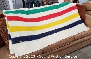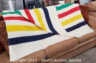 Lot #0121: Vtg. Hudson Bay Wool "Lines" 64" x 87" Blanket
