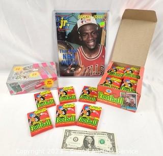 Lot #0136: (2) 1990's Football Card Box Sets & Magazine