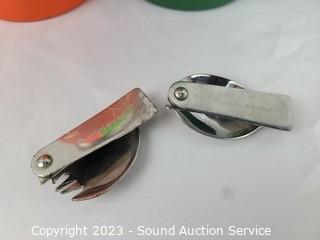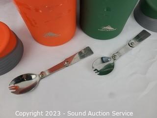 Lot Details: Each comes with spoon that folds into the lid, cap doubles as a bowl. both have some tape residue.