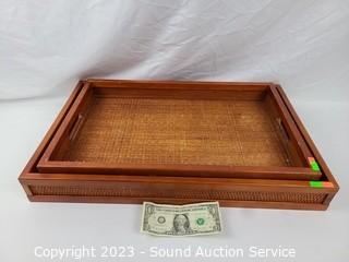 Lot #0189: 2 Wood Woven Bottom Tray's