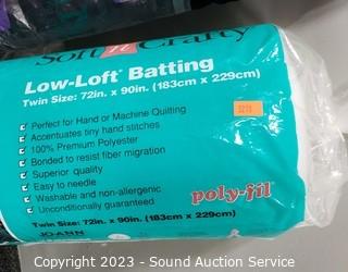 Lot Details: Fabric approx. 43" to 56" wide x unknown length. 72" x 90" twin size batting.