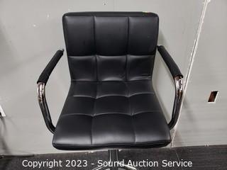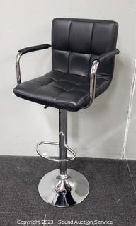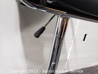 Lot Details: Chrome finish black vinyl upholstery. 24" to 32" to seat. Some signs of wear from use, no major issues.