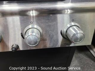 Lot Details: Comes with propane tank. Igniter not working, otherwise appears to be functioning as intended. Grill could use a good cleaning various rust & wear inside. 48" H x 58" W x 22" D.