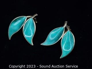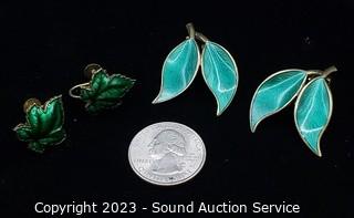 Lot Details: Leaf earring are marked David Anderson, earrings unmarked but similar design. Ring marked "Made in Norway". Clip marked "Denmark". TW:31g.