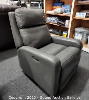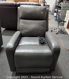 Lot #0012: Gray Leather Gliding Power Recliner*CONDITION UPDATE*