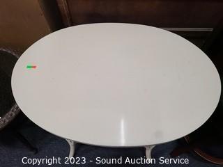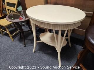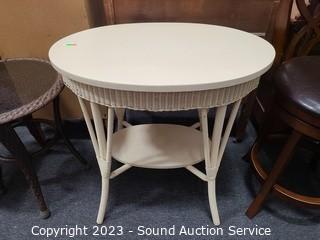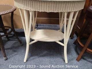 Lot #0014: Ivory Finish Wicker Wove Accent Table