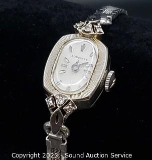Lot #0049: Ladies Longines 17j Watch w/14k & Diamond Case