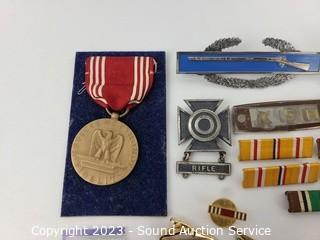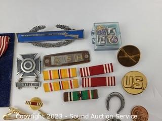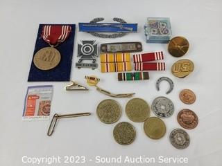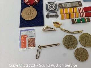 Lot #0035: Military Medal, Pins, Bars & Danish Coins