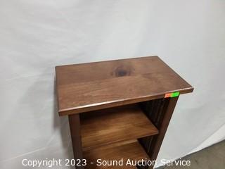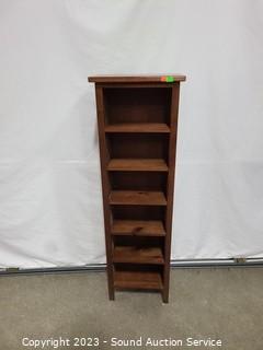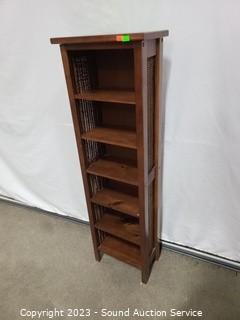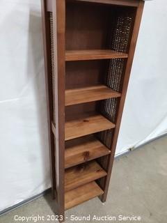 Lot #0026: Narrow Pine & Wicker Petite Shelving Unit