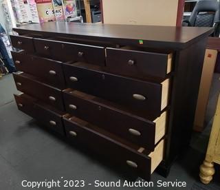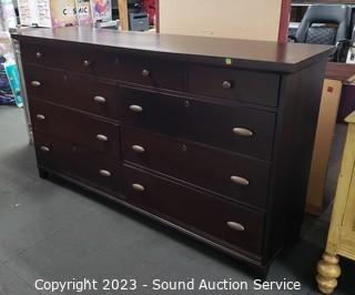 Lot #0227: Nice Lane Dark Stain 9-Drawer Dresser