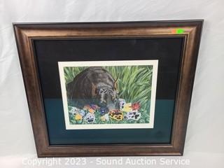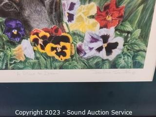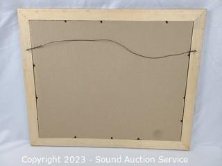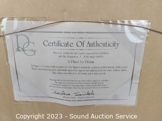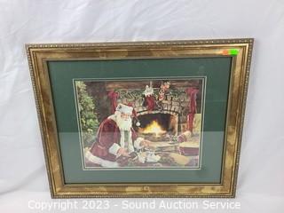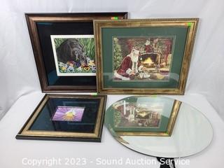 Lot Details: 22" x 18" mirror, can be hung, vertically or horizontally. Pam Houle watercolor? 16" x 14", Santa print, 19" x 23". And Darlene Swibb Ltd. Lithograph Artwork w/CoA, Titled "A Place to Dream" #1/40, 20" x 23".