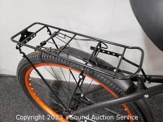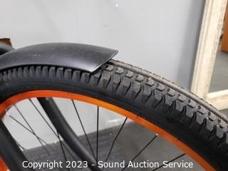 Lot Details: No handle grips. Comes with rear cargo rack, fenders, has peddle brakes, kick stand. Some light wear to finish, front fender is loose, rattles. Overall good great condition.