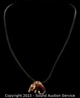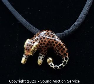 Lot #0042: SLC 14K Gold Enamel Leopard Slide Pendant