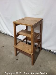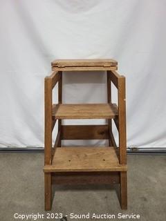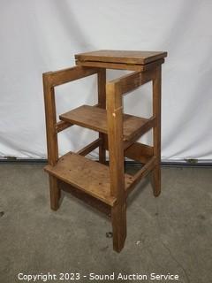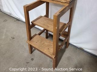 Lot #0008: Solid Oak 2-in-1 Step Stool, Chair