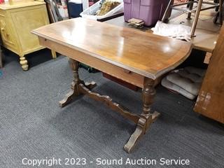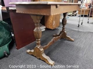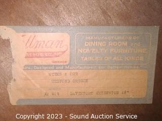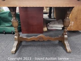 Lot Details: Does not come with leaves, made in Oregon. Some wear scuffs and wear to finish from age, use. 30" H x 45" x 21".