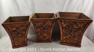 Lot #0025: 3 Graduating Decorative Baskets & Metal Pot Decor