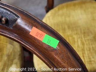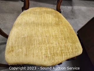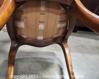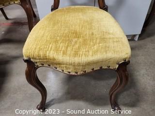 Lot Details: Carved accents, nailhead upholstery. Various wear to upholstery. 35" H x 17" W x 17" to seat.