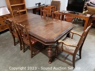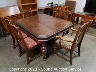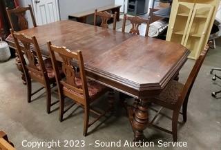 Lot #0010e: Antique Mahogany Dining Table w/6 Chairs