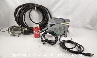 Lot #0150: Approx. 50ft Drop Light & 24V Battery Charger