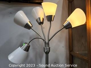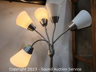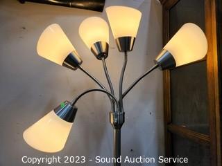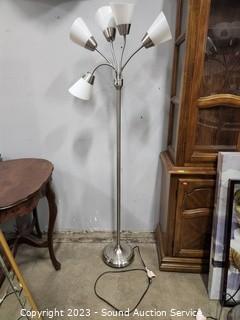 Lot #0005e: Brushed Nickel Finish 5-Light Floor Lamp - Works