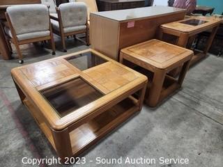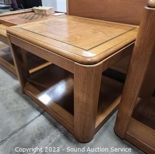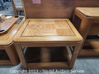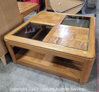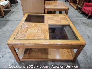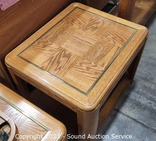 Lot #0225e: Oak w/Brass Accent Coffee & Side Table