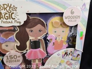 Lot #0176: Story Magic 150pc Dress Up Wooden Doll Play Set