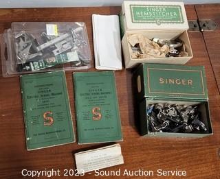 Lot Details: Comes with Hem-Stitcher, manual & various accessories. Works. Light cover not fitting light. Serial AG647740. Some wear to finish.