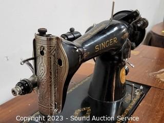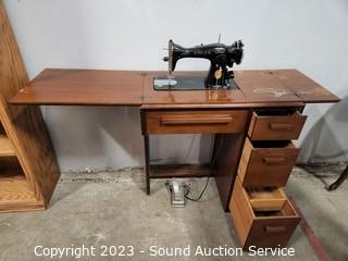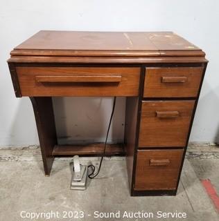 Lot #0018: Vtg. 1946 Singer Sewing Machine w/Cabinet