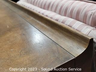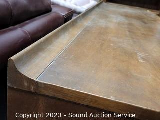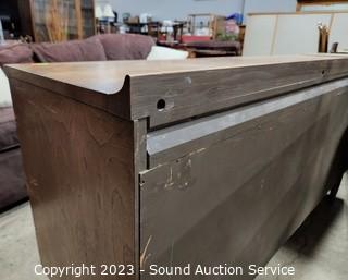 Lot Details: 3 Drawers, solid wood construction. Various wear to finish. 31" H x 62" W x 17" D.