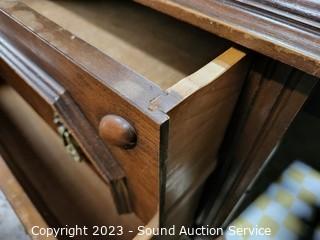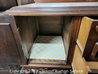 Lot Details: 2 Drawers, 2 cabinets, solid wood construction. 36" H x 68" W x 23" D. Various wear to finish.