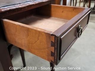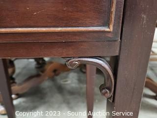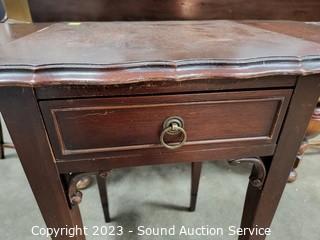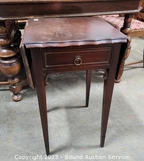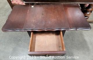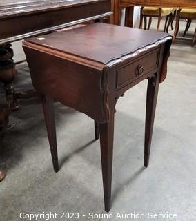 Lot #0013: Vtg. Mahogany Drop Leaf Single Drawer Side Table