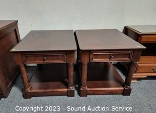 Lot #0004: 2 Nice Cherry Finish Single Drawer Side Tables