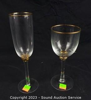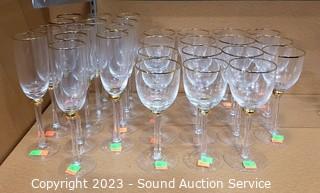 Lot #0236: 28pc Gold Trim Crystal Wine & Champagne Glasses