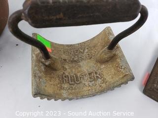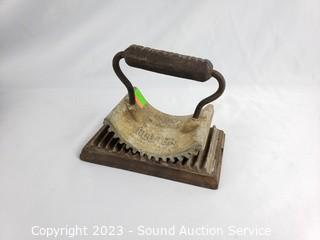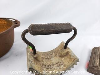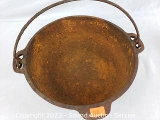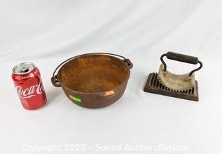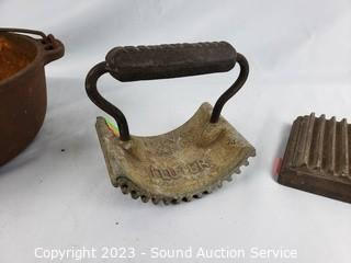 Lot #0207: Antique 1866 Cast Iron "Heat This" Groove Fluter & 8" Pot