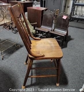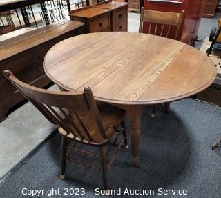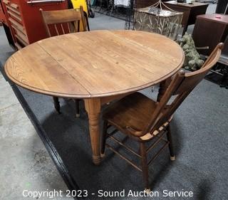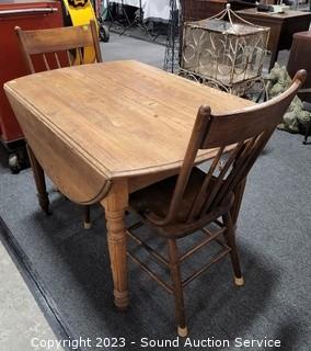 Lot #0007: Antique Oak Drop Leaf Table w/2 Chairs