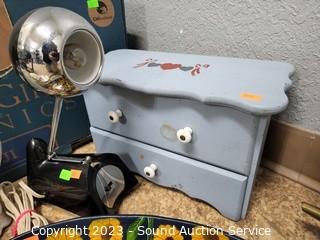 285 Lots including: Firearms (Colt .22LR Single Action Frontier Scout Revolver, Browning BL-22 Lever Action .22 Rifle w/Scope), HON Black Steel Locking Cabinet, Ethan Allen Baumritter Maple 2pc Hutch, Antique Oak Drop Leaf Table w/2 Chairs, Vtg. Jofco Fine Furn. Mahogany Executives Desks, Balsa Wood Model Airplane Kits, Thomas Kinkade Artwork, Maritime Sextant, Daisy 1894 Limited Edition Lever Action BB Gun, Aladdin Lamps, Trumpet, NASA, Coca-Cola, Disney Pins, Coin Banks, Vtg. Novelty Magazines, Xena Collectibles, Vtg. Heathkit HX-30 6-Meter SSB Transmitter, Sewing Patterns, Collectible US Coins, Gumball Machine w/Stand, Large Pet Kennel, Lane Cedar Hope Chest. Lighting, Bed & Bath, Camping & Outdoor & Much More!!!