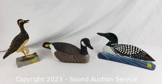 Lot #0208: Cast Iron Door Stop & Wood Goose/Bird Sculptures