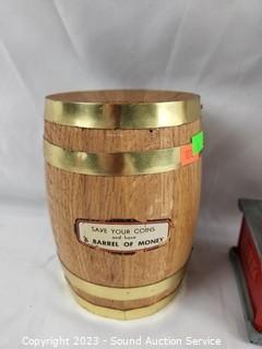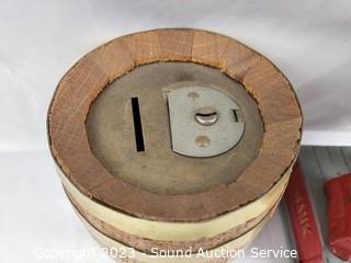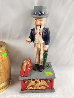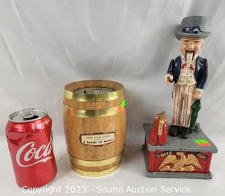 Lot #0050: Mechanical Uncle Sam & Wood Barrel Coin Banks