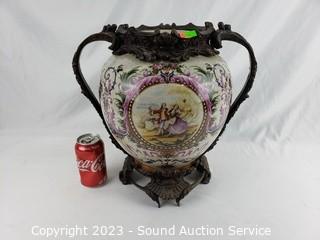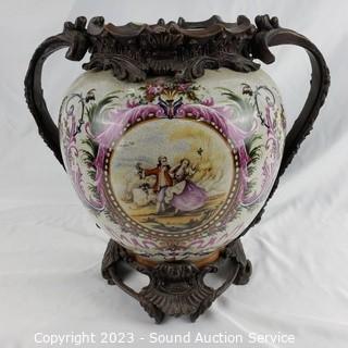 Lot #0095: Oriental Cast Metal Encased Porcelain Planter Pot