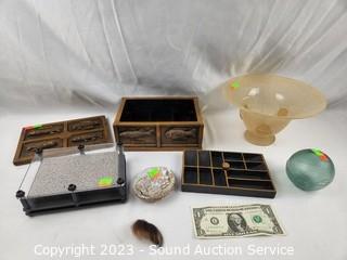 Lot #0037: Pin Art, Fishing Float, Fish Trinket Box, Claw