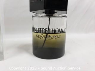 Lot Details: 3.3oz Yves Saint Lavrent "La Nuit de L'Homme" & 4.2oz, Dior "Homme". Approx. 3/4 & half full.