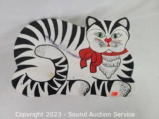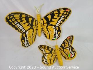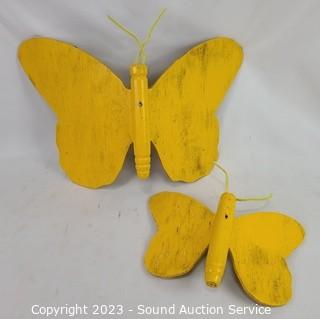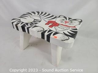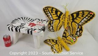 Lot #0136: 2 Wood Painted Butterfly Decor & Cat Stool