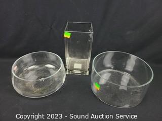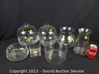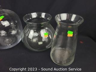 Lot #0094: 7pc Clear Glass Vase & Candle Votive Decor